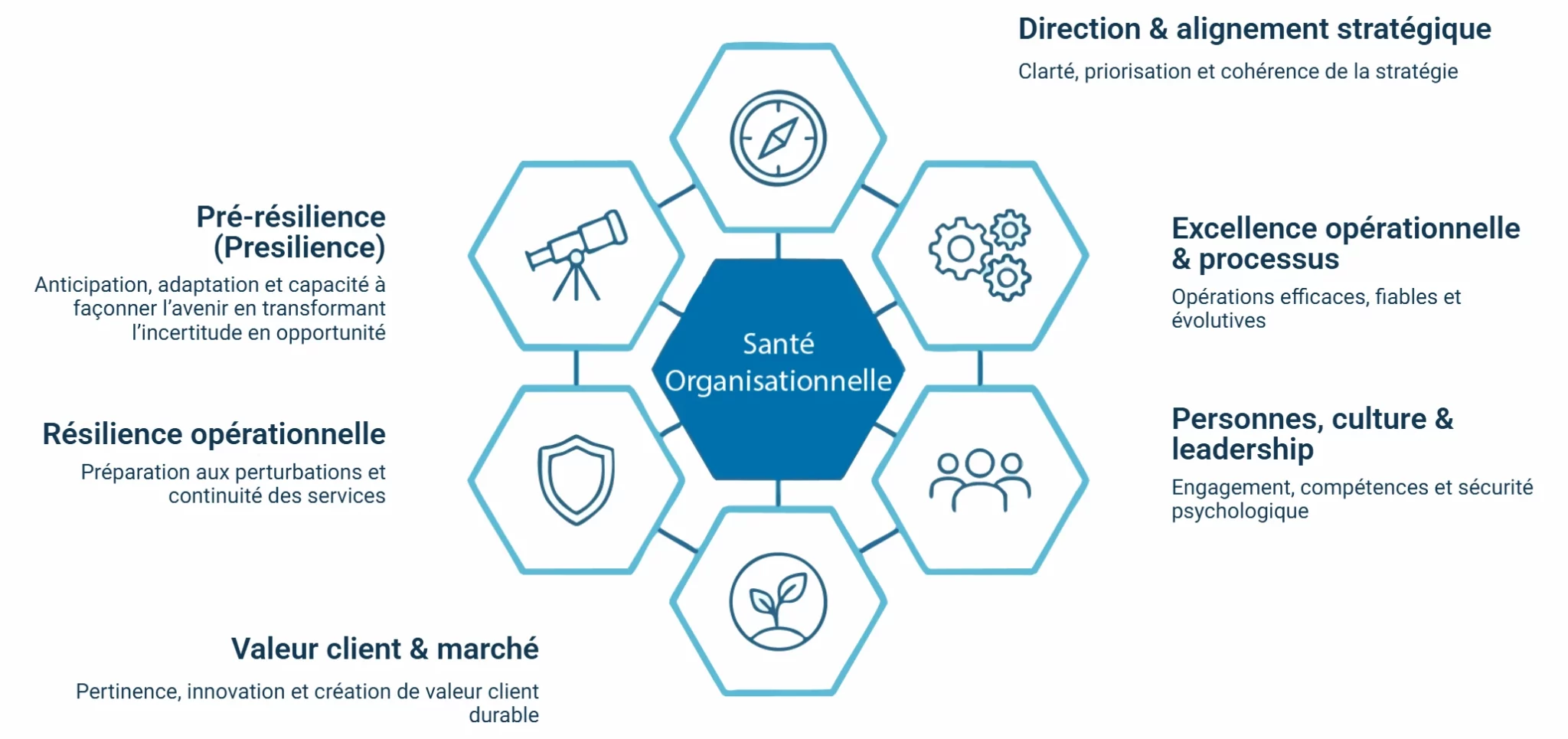 La maîtrise de vos activités est une approche de management équilibrée qui intègre à la fois la performance et la santé de l’organisation dans son ensemble. À travers un cadre en six dimensions — couvrant la stratégie, les opérations, les personnes, les clients, la résilience et la préparation à l’avenir — Smartcockpit propose une méthode structurée pour comprendre, piloter et améliorer ce qui contribue réellement au succès organisationnel.